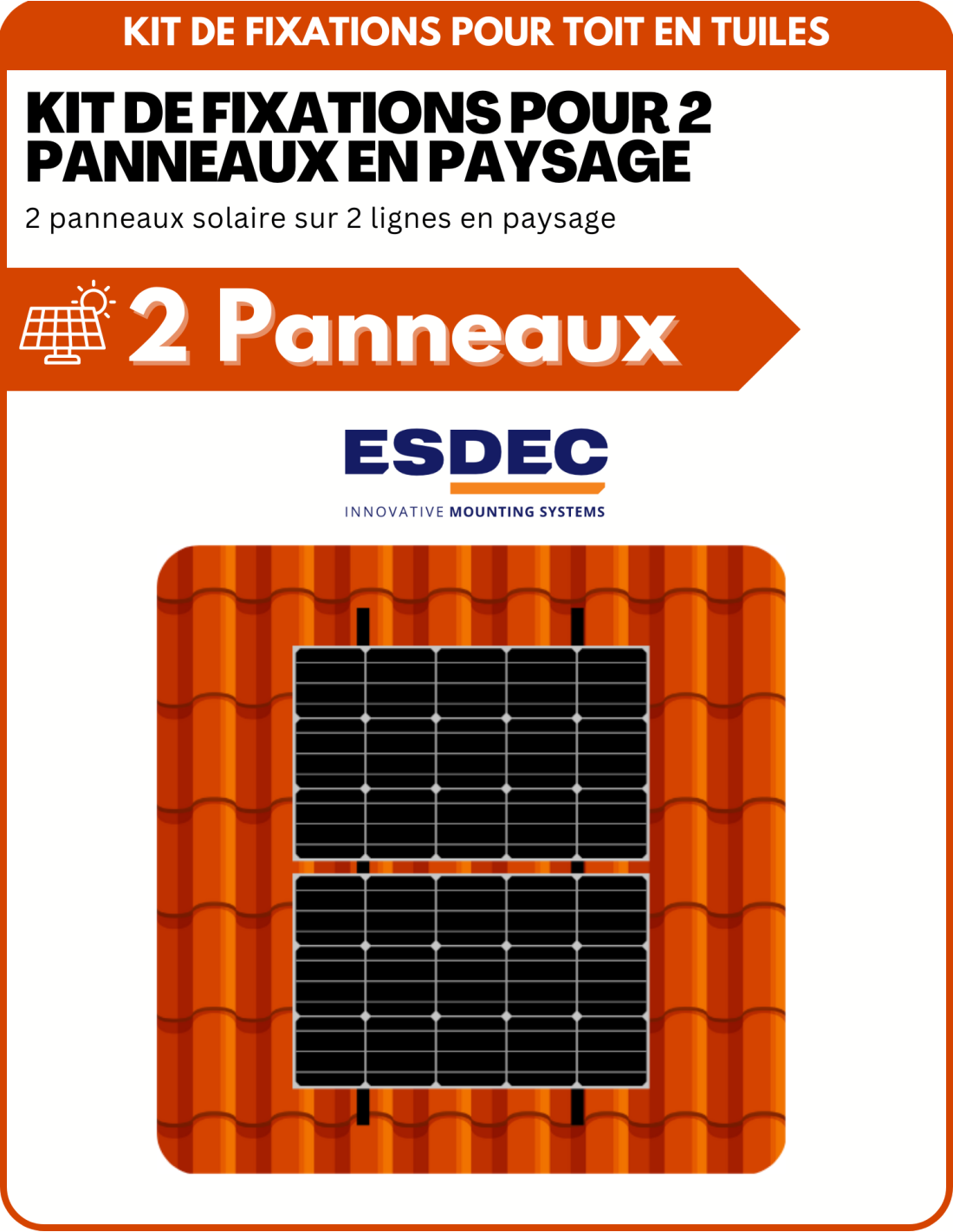 Kit de Fixation 2 panneaux solaires pour toit en tuile sur 2 lignes | Orientation : Paysage