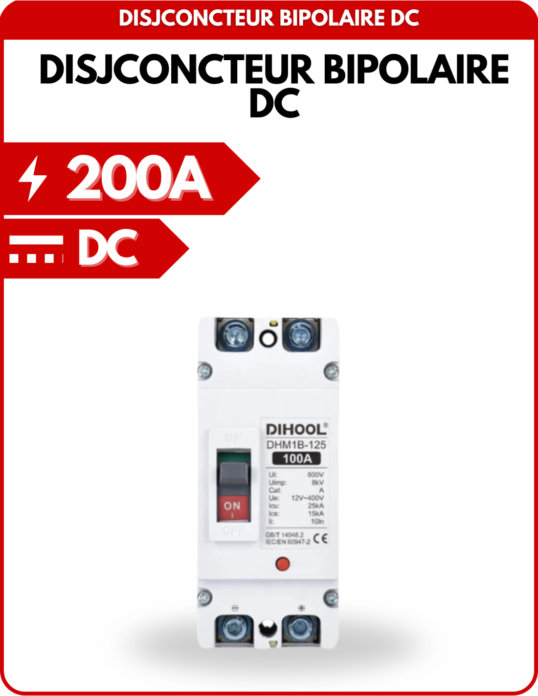 En résumé, un disjoncteur DC 200A bipolaire offre une protection essentielle dans les systèmes à courant continu de haute puissance, assurant la sécurité et la fiabilité de l'installation en protégeant contre les surcharges et les courts-circuits.