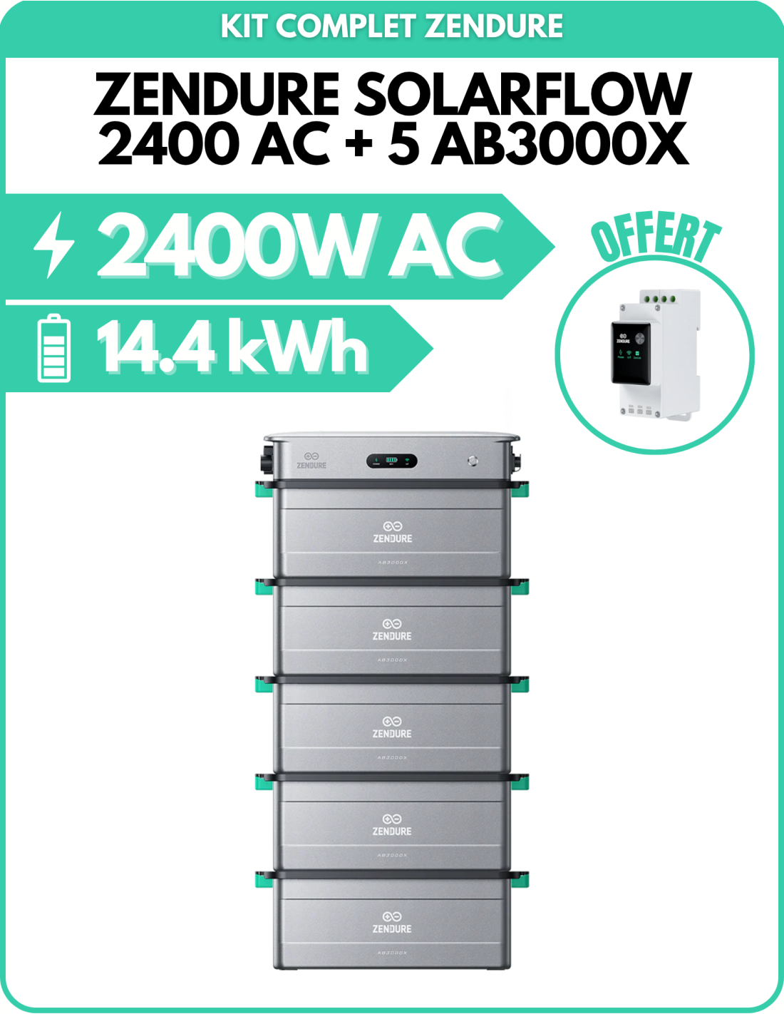 Kit batterie Zendure Solarflow 2400 AC + 5 AB3000X - 14.40kWh