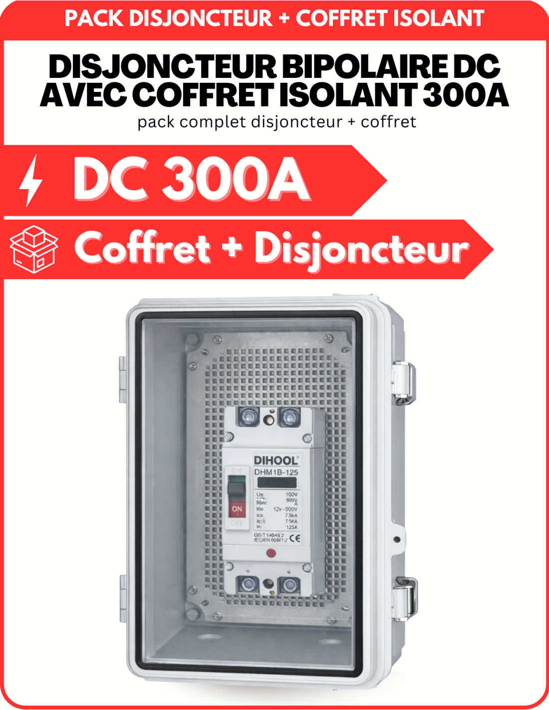 Coffret Isolant + Disjoncteur Bipolaire DC pour protection batteries 300A