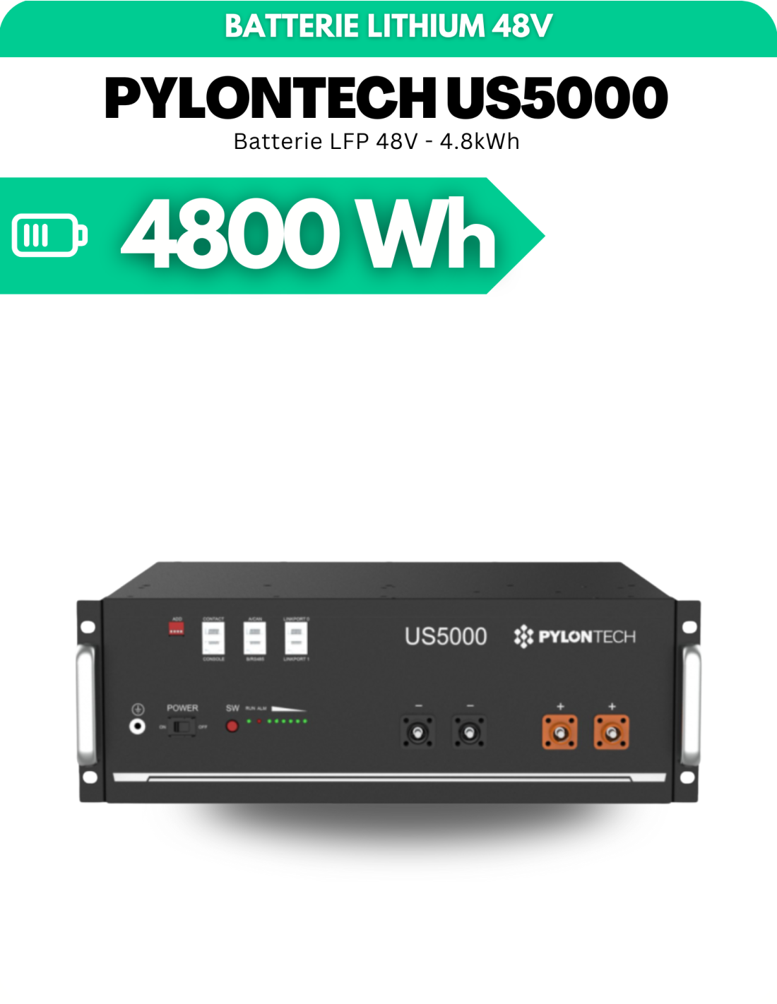 Données techniques de la Batterie Lithium Pylontech US5000 4.8 kWh 48V